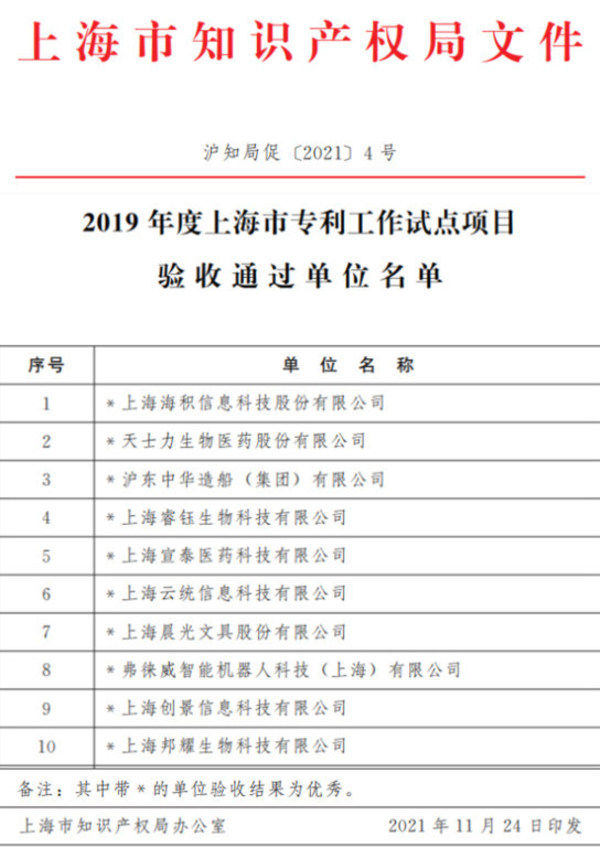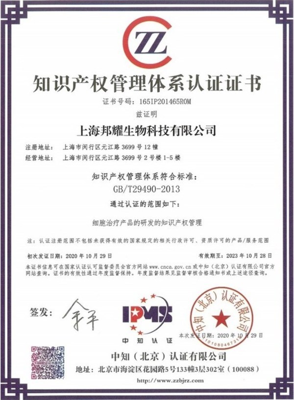 上海2021年12月3日 /新闻稿网 - Xinwengao.com/ — 如今,知识产权作为国家发展战略性资源和国际竞争力核心要素的作用愈加凸显,其中,提高“知识产权价值”已然成为我国现阶段知识产权建设的最重要目标。 作为聚焦于基因治疗和细胞药物研发公司 — 邦耀生物,始终高度重视知识产权的开发与保护。2021年11月,经过企业答辩、专家评审等程序,邦耀生物以高分通过了上海市专利工作试点企业的验收,且在上海93家专利试点企业中优中选优,以排名前10的成绩获评为“上海市专利工作试点优秀单位”。 邦耀生物获评通知,图源/上海知识产权局官微 邦耀生物的专利试点建设过程也是其高价值专利培育的过程。2019年,邦耀生物从500家竞争企业中脱颖而出,获评“上海市专利工作试点企业”。2020年~2021年的专利试点建设期内,邦耀生物重视国内及国际的高价值专利布局,PCT申请比建设前增长了120%,建设期内新授权专利量达到此前历年总和的180%。 “上海市专利工作试点企业”荣誉证书 专利价值的快速提升有赖于邦耀生物务实稳健的知识产权管理工作。依据《企业知识产权管理规范》(GB/T29490-2013),邦耀生物于2020年10月已取得知识产权管理体系认证证书。 “知识产权管理体系认证”荣誉证书 此外,通过上海专利试点企业的建设,邦耀生物实现了“研发前景评估-申请前可专利性分析-申请时专利挖掘-日常防范侵权风险”的可操作闭环,减少了重复研发导致的资源浪费,提高了专利的保护范围及布局维度,进而提高公司整体的知识产权价值。 邦耀生物CEO席在喜先生 关于获评“上海市专利工作试点优秀单位”,邦耀生物CEO席在喜先生表示,上海市专利工作试点项目的优秀通过和《知识产权管理体系认证证书》的获得,标志着公司的知识产权管理能力得到了全方位的锻炼和提升,获得了主管单位和第三方机构的高度认可。 其实自成立以来,邦耀生物就十分重视科技创新工作,希望能通过建立知识产权信息数据库,将企业关键技术进行专利申请,多举措开展知识产权人才培养等,不断提高企业知识产权创造、运用、保护和管理能力。此前就曾与华东师范大学等科研院校签订产、学、研合作协议,助推企业发展。 此次,经过2年的专利试点建设期,邦耀生物完成了知识产权团队的梯队化建设,实现了知识产权软硬条件的配备,优化了公司的知识产权管理体系,全面贯彻了“全员参与知识产权运用与管理”的理念,提高了研发人员专利信息的检索与利用能力,助力邦耀生物在基因编辑与细胞治疗研发领域的技术创新与突破,从而为产品的早日上市保驾护航,也进一步推动邦耀加快实现“以基因编辑引领创新,开发突破性疗法,造福全人类”的使命。