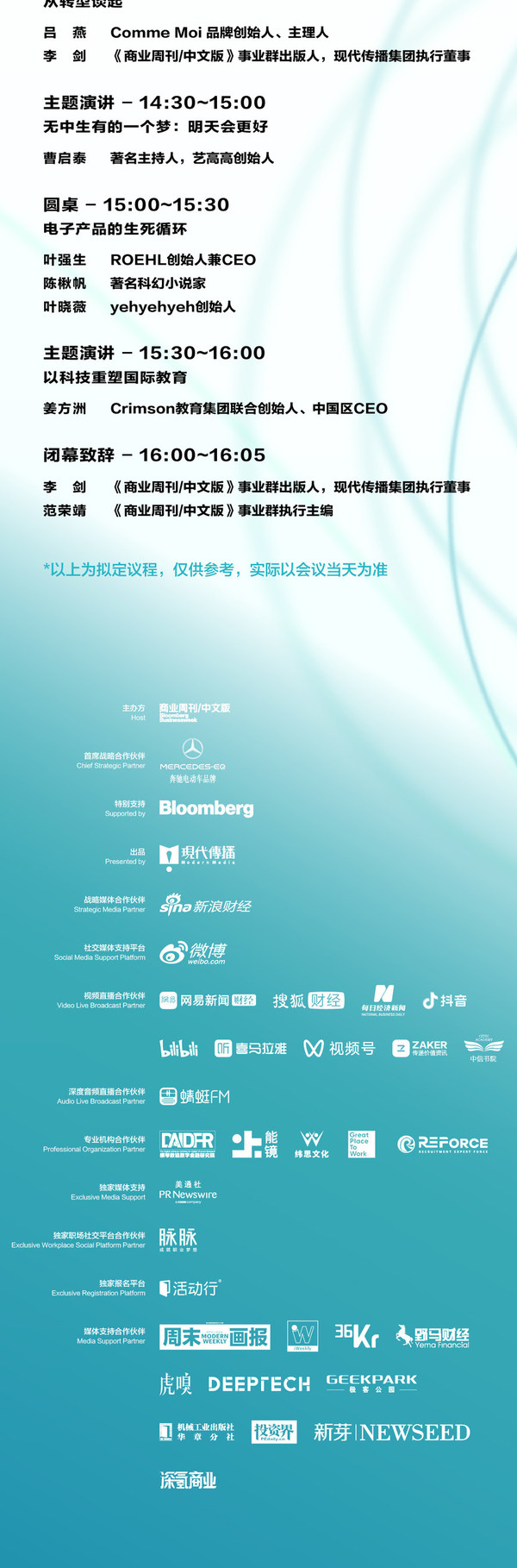 值得一提的是,《商业周刊/中文版》自改版后,已经走过了十个年头。这十年,是全球经济变化的十年,也是中国快速发展的十年。无论是经济与商业,还是媒体环境,抑或是受众的阅读和使用习惯,都发生了翻天覆地的变化。未来十年,《商业周刊/中文版》将携手三个全新媒体品牌Bloomberg Market、Bloomberg Green以及City Lab,共同为用户提供更加全面、更有深度的内容与服务。