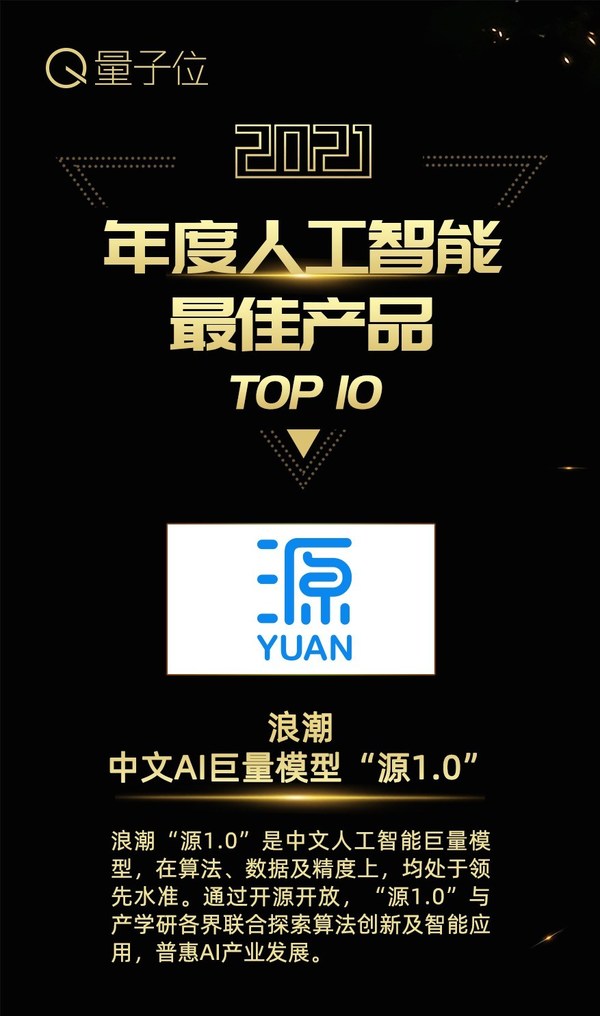 “2021年度人工智能最佳产品TOP10”涵盖了AI领域从底层到应用的最佳产品,它们为AI变革更多场景带来了崭新的机遇。全球最大中文巨量模型“源1.0”,荣登榜单。
