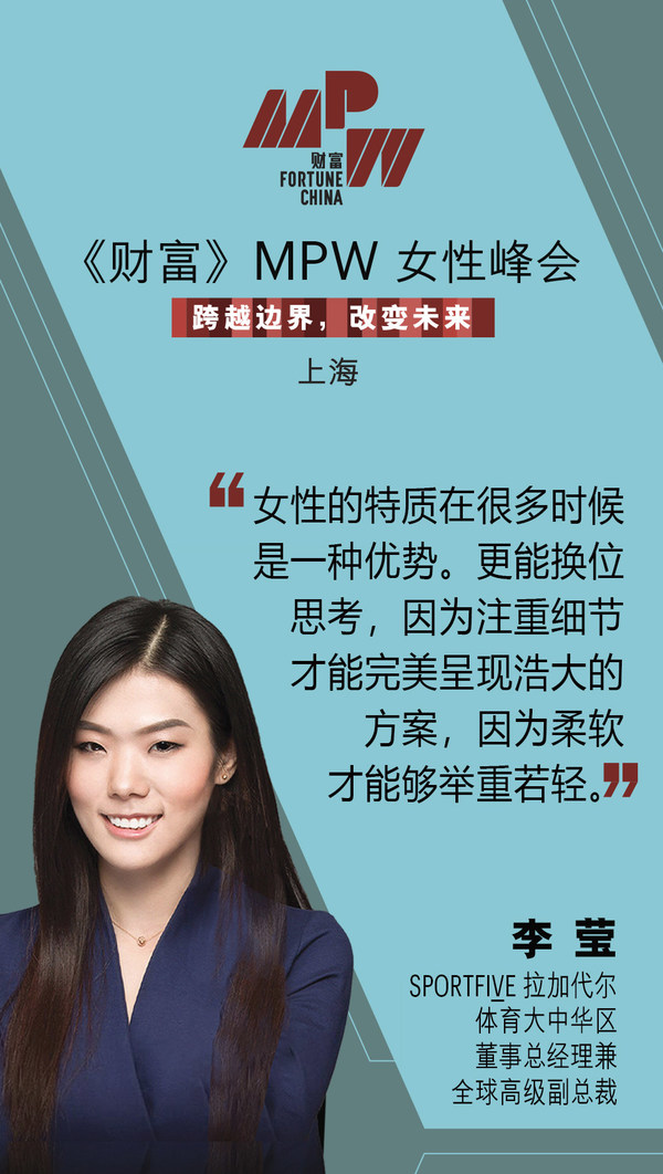 上海2021年12月13日 /新闻稿网 - Xinwengao.com/ — 12月9日,2021《财富》MPW女性峰会在上海举办。本次峰会集结了多个领域中杰出的中国女性领导者,以“跨越边界,改变未来”为主题,就颠覆性科技创新、ESG助力可持续新增长、赋能女性创业者、新消费体验和教育变革等热门议题展开讨论、分享经验,洞见未来、改变未来。 SPORTFIVE/拉加代尔体育大中华区董事总经理兼全球高级副总裁李莹(Echo Li),受邀出席《财富》MPW女性峰会及颁奖典礼,与德勤中国副首席执行官蒋颖、Gensler大中华区执行总裁李晓梅,共同在主题为“决策层中更多女性”的话题中进行深入探讨,分享女性领导力在全球体育商业领域内,面临挑战与变革中所展现的女性影响力、智慧与韧性。 出席此次峰会的各位女性领导者可谓是巾帼不让须眉。峰会邀请了苹果、耐克、麦当劳、谷歌、联想集团、高通、辉瑞、携程、麦肯锡、德勤中国、华大基因集团、科思创、山行资本、华创资本、恩和生物、开云集团、清华大学中国科技政策研究中心、蒲公英中学、骊住水科技集团等全球500百强企业的女性董事长、总裁和高管。此外,2021年中国最具影响力的商界女性榜单的获奖嘉宾也受邀出席峰会,大家以线上线下的方式在现场分享各自行业领域的真知灼见。 2021 年《财富》世界 500 强公司中,仅有23 家的首席执行官是女性,尽管比去年多 9 家,但依旧是一个极低的数字。决策层中女性依然稀缺,这对于公司做出重要的商业抉择会产生潜移默化的影响。谈到决策层中的女性人数现状时,李莹从体育行业的不同维度分享决策层中男女比例不均的缘由和改变方法。 在崇尚运动和阳刚的体育行业,无论粉丝群体还是从业人员,其女性比例较于其他行业明显偏低。在全球范围内,作为“世界第一运动”的足球,球迷男女比例严重失调。而上升到决策层中,女性在各体育协会管理层中的比例更低,因为多数体育赛事联盟、俱乐部和大型集团的管理者是以体育竞技者的身份演变(例如奥组委主席托马斯·巴赫是前男子花剑团体冠军),这也给本身女性基数就少的体育群体增加了一定的难度。 体育行业的特殊属性造成了决策层中女性比例较少,但体育也成为了促进全球性别平等大改变的关键之一。 以奥运会为例,东京奥运会男女运动员的参赛比,已经达到了51%和49%,算是历史上最“性别平等”的一届奥运会。我们不断地帮助女性运动员在商业价值上追求男女平等,让更多的女性参与到体育产业当中,在场外收获更多的商业回报。 伴随着女性体育职业化的日趋完善,以及女子力崛起的社会风潮,女性选择加入体育商业领域的比例增长已经毋庸置疑。李莹坦言:“体育明星的领袖力量会带动更多群体投入到这个行业,形成良性循环,从而间接提升体育决策层中的女性比例。” 数字化时代背景下,组织管理典范逐渐发生转移,为女性的影响力提供了更多机会和平台,也引导着SPORTFIVE/拉加代尔体育在数字化背景下向前发展的方向。 谈及数字化给决策层中的女性带来了什么机会的话题,李莹认为,数字化系统在后疫情时代给更多女生在职场上带来便利,在职场与家庭角色的转换过程中,挖掘出更多潜能。 SPORTFIVE/拉加代尔体育作为一家全球领先的体育商业机构,一直非常积极地拥抱数字化,不断优化升级CRM系统,涵盖体育资源管理、数据洞察、售后客户服务,辅助遍布全球20多个国家的2000多员工,在跨国家跨团队的商业谈判中,助力集团全球的女性同事通过数字化平台缩减时差、地域甚至是职级的隔阂,参与到决策过程中。 当被问及自身从庞大的机构中脱颖而出的职场经验时,李莹在现场集合自己在海外多年的从业经历,分享了心得: “从阿联酋、新加坡到上海一路走来,我觉得职场中男女差异性普遍存在,想要一路往前,需要保持顺势而为,乘势而上的和解心态。相较于男性,女生大部分人会更加细腻,善于包容,具有较高的柔韧度。女性的特质在很多时候是一种优势,更能换位思考,因为注重细节才能完美呈现浩大的方案,因为柔软才能够举重若轻。” 最后,回应论坛主题“决策层中更多女性”时,李莹分享了体育行业中的女性特质-不可或缺的理性“左脑”。 在体育行业,对于某一个体育明星、球队真爱粉的男性从业者而言,碰到一些重大决策时,难以理性判断。反观女性决策者,即便热爱体育,但能快速地从竞技体育中抽出来,在杀伐决断中快速做出理性的商业思考。 《财富》MPW(Most Powerful Women)是《财富》最具影响力的商界女性榜单,也是中国最杰出的领导力社区之一。通过汇集商界、政界、艺术界及其他各领域的中国女性领导者,MPW社区吸引了当今中国最杰出和最有影响力的女性,围绕企业最关心问题进行对话和讨论,在交流思想和探讨最佳实践的同时,也激励和启发了更多女性成长与发展。