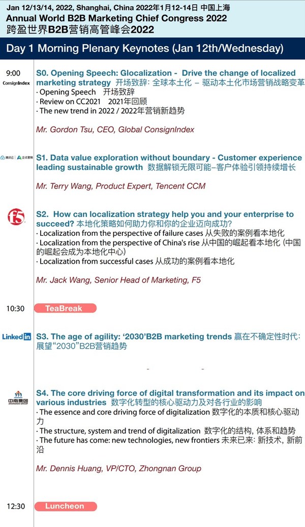 本次年度跨盈世界B2B营销高管峰会(CC2022)将于2022年1月12-14日在上海举办
