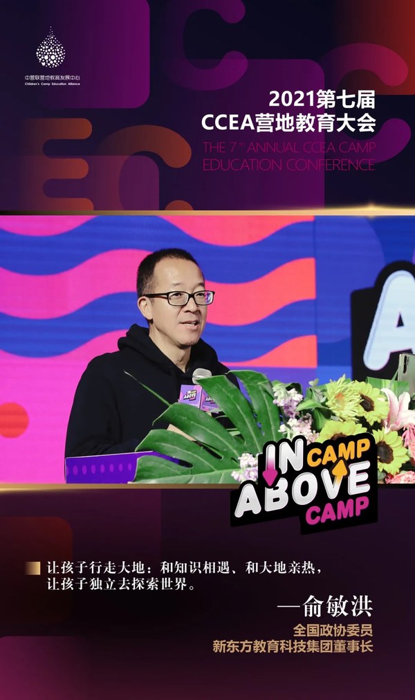 全国政协委员,新东方教育科技集团董事长俞敏洪老师亲临现场,为2021CCEC做了本届大会主题演讲。俞老师说孩子成长的有2条必经之路,包括和知识相遇(意味着阅读)、和大地亲热(意味着行走)。生命的精彩源于对生命的热爱,亲近自然和自然界的生命,会让孩子对生命有更好的认知。