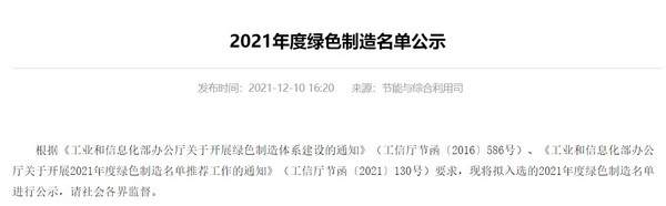 “国家级绿色工厂”创建活动是由国家工信部组织开展的全国性评选活动,旨在贯彻落实《中国制造2025》和《工业绿色发展规划》,加快推动绿色制造体系建设,打造绿色制造企业先进典型。 “绿色工厂”是指实行用地集约化、生产清洁化、废物资源化、产品环保化,并且在生产过程中没有产生污染的工厂。