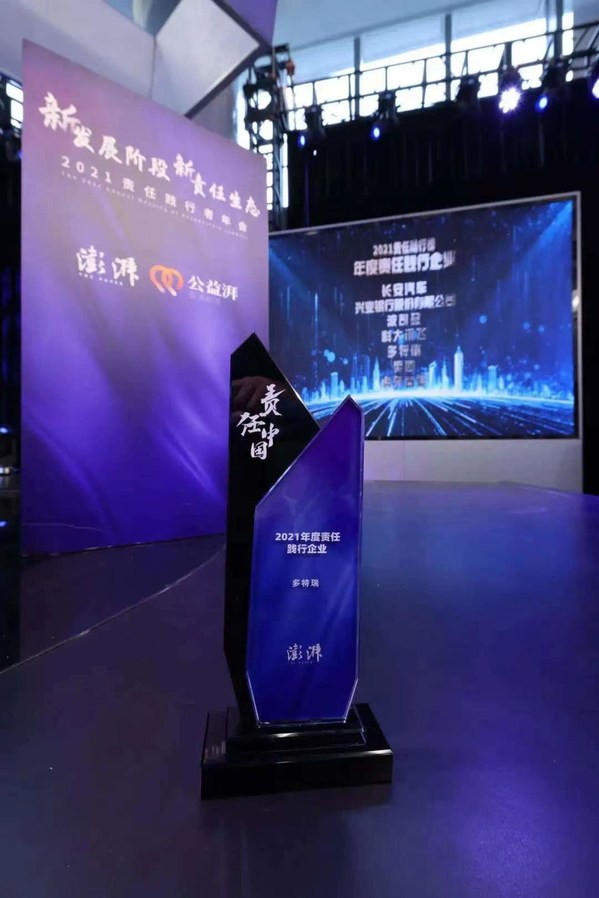 上海2021年12月23日 /新闻稿网 - Xinwengao.com/ — 近日,第四届“澎湃责任践行者年会暨年度责任践行榜评选”在上海召开,会上揭晓了“2021年度责任践行榜单”。全球知名芳香护理和精油品牌多特瑞凭借长期的公益善举,摘得“年度责任践行典范企业”奖。