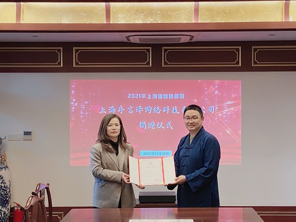 上海2021年12月24日 /新闻稿网 - Xinwengao.com/ — 2021年12月20日下午,上海序言泽网络科技有限公司(以下简称“序言泽网络”)向上海慈爱公益基金会捐款并举行“无障爱 · 扶残助老”资助捐赠仪式。仪式上,上海慈爱公益基金会、序言泽网络双方代表签订了“无障爱 · 扶残助老”捐赠协议,并就捐赠款项十五万元用于为老助老定向服务达成一致。