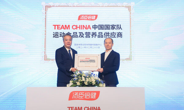 广州2021年12月28日 /新闻稿网 - Xinwengao.com/ — 2021年12月28日,国家体育总局体育器材装备中心授牌宣布,汤臣倍健成为TEAM CHINA中国国家队运动食品及营养品供应商,为国家队70余支队伍的运动员供应运动食品、营养品和专业营养备战方案。