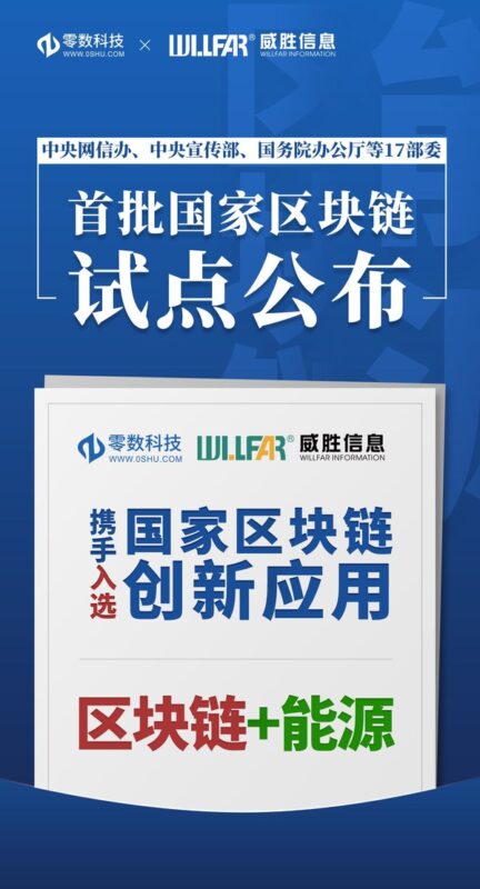 上海2021年12月29日 /新闻稿网 - Xinwengao.com/ –12月22日,中央网信办、中央宣传部、国务院办公厅等17部委公布了《关于国家区块链创新应用试点入选名单的公示》,零数科技携手威胜信息入选“区块链+能源”特色领域试点名单