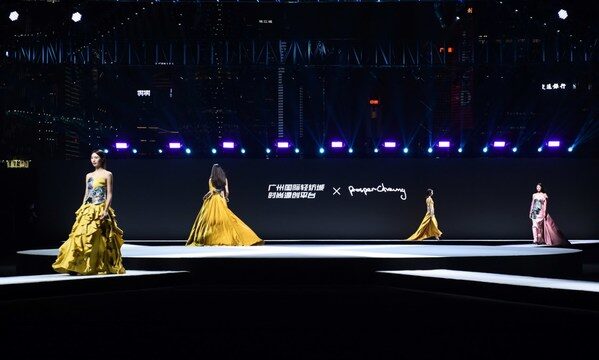 广州2022年1月5日 /新闻稿网 - Xinwengao.com/ — 珠江之畔,广州塔下,时尚热潮持续涌动。12月29日晚,广州国际轻纺城时尚源创平台与服装设计大师张肇达的联名大秀,作为2021广州国际时尚产业大会-“海珠之约·数字时尚夜”活动的压轴惊艳上演,一套套精致时尚的礼服,将中式浪漫和现代抽象完美融合,呈现了一场夜阑人静时如梦似幻的视觉盛宴。
