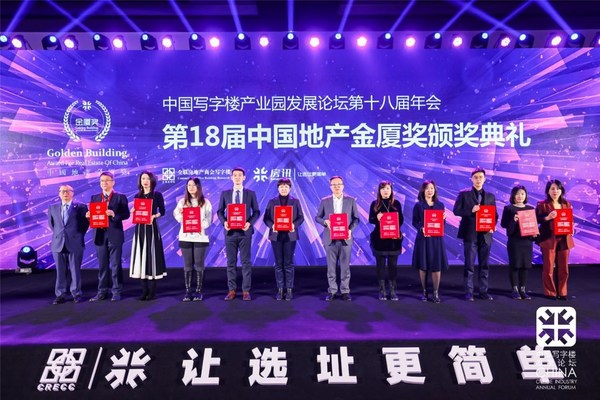 在中国写字楼产业园发展论坛第十八届年会上,2021年中国地产金厦奖重磅揭晓,并举办了盛大的颁奖典礼。