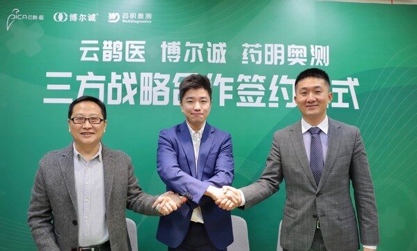 上海2022年1月10日 /新闻稿网 - Xinwengao.com/ — 2022年1月10日,云鹊医疗科技(上海)有限公司(以下简称“云鹊医”)与博尔诚(北京)科技有限公司(以下简称“博尔诚”)、上海药明奥测医疗科技有限公司(以下简称“药明奥测”)签署三方战略合作协议。三方将深度整合各自优势资源,共同推动胃肠癌早筛检测服务在基层落地,帮助广大基层百姓提高预防意识,筛查疾病隐患。