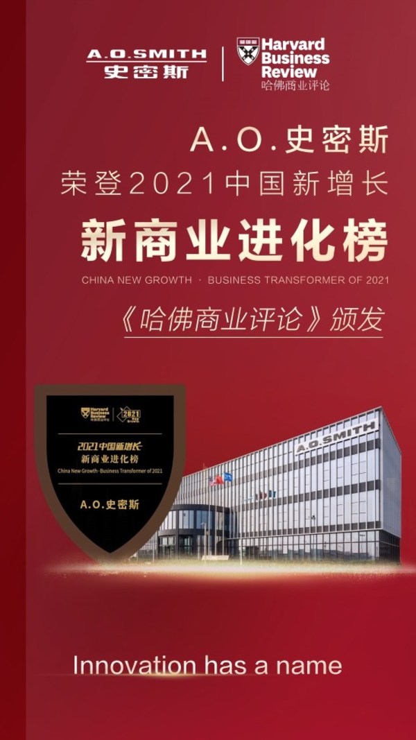 作为全球知名的百年家电企业,A.O.史密斯用成绩展现综合实力,用荣耀斩获业界认可。正如此次荣登《哈佛商业评论》2021中国新增长榜单,充分彰显了业界对A.O.史密斯创新成果的高度肯定。
