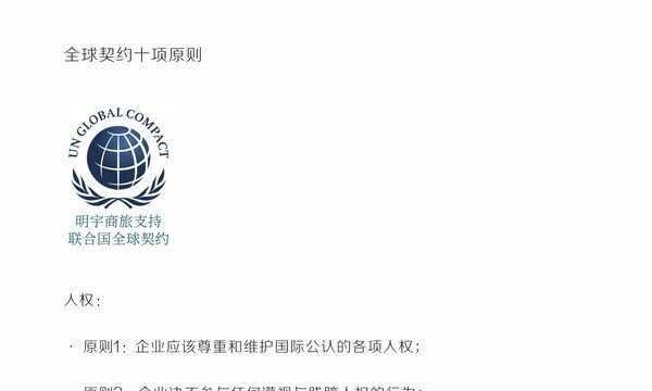 明宇商旅高级副总裁张磊先生表示:“2019年4月,第二届“一带一路”国际合作高峰论坛在北京召开,包括中国国家领导人在内的约40位国家元首共同发表了《第二届“一带一路”国际合作高峰论坛圆桌峰会联合公报》,其中第18条明确:’为实现项目可持续性,我们支持各国在项目准备和执行方面加强合作,确保项目可投资、可融资、经济可行及环境友好。我们呼吁“一带一路”合作的所有市场参与方履行企业社会责任,遵守联合国全球契约。’ 明宇商旅正式成为联合国全球契约组织参与者以及全球契约签署企业,是明宇商旅对标国际标准,推动企业可持续发展的一项重要举措。明宇商旅承诺响应国家一带一路倡议,支持其企业成员可持续发展目标(SDGs)的实现,积极践行社会责任,引领中国酒店行业的可持续发展。”