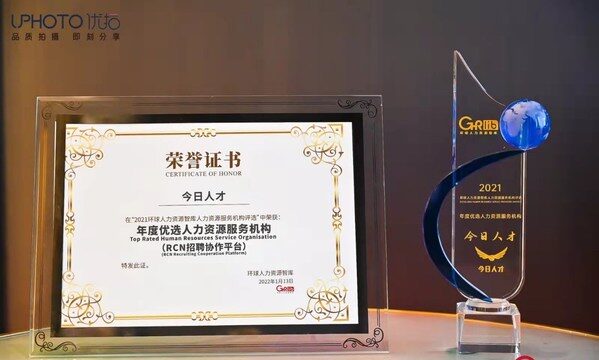 上海2022年1月14日 /新闻稿网 - Xinwengao.com/ — 1月14日,由环球人力资源智库(GHR)举办的“2021环球人力资源盛典”在上海隆重举行。深圳今日人才信息科技有限公司(以下简称“今日人才”)凭借在人才招聘领域的优异表现和良好口碑,一举夺得“2021年度优选人力资源服务机构 — RCN招聘协作平台”(Top rated Human Resources Service Organisation – RCN Recruiting Cooperation Platform)殊荣,今日人才创始人、董事长兼CEO胡伟先生(Eric Hu)在“2021环球人力资源智库人力资源行业评选”中获评“年度人力资源影响力人物”。