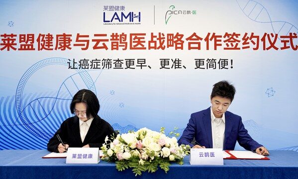 2022年1月13日,中国领先的基层医疗数字化服务平台云鹊医与癌症早筛全球性生物科技公司莱盟健康LAMH签署战略合作协议,推动莱盟健康LAMH肝癌早期精准筛查产品甘倍康®下沉基层,依托基层医生网络,实现从筛查、诊断到健康管理的肝健康服务整体闭环。云鹊医将通过面向百万基层医生的教育培训及服务触达能力,提升基层的肝癌早期预防筛查理念,变被动治疗为主动预防,帮助超过5万基层居民实现肝癌的早发现、早诊断、早干预。此次合作将云鹊医的数字医疗教育和渠道服务能力与莱盟健康的肝癌早筛产品相结合,致力于打造我国规模最大、范围最广的肝癌早筛推广项目。
