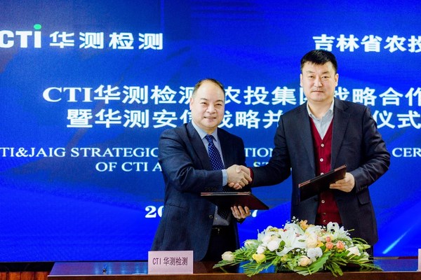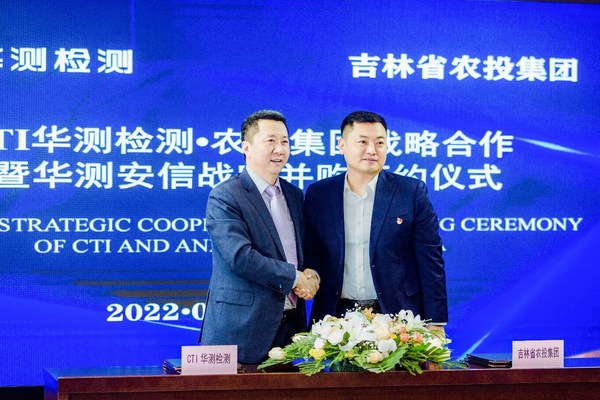 深圳2022年1月17日 /新闻稿网 - Xinwengao.com/ — 为落实市场监管总局《关于进一步深化改革促进检验检测行业做优做强的指导意见》鼓励非公有资本参与国有检验检测企业混合所有制改革、振兴东北老工业基地,2022年1月17日,吉林省农投集团有限公司(简称吉林农投)与华测检测认证集团股份有限公司(简称CTI华测检测)战略合作暨华测安信战略并购签约仪式在吉林长春隆重举行。农投集团董事长霍岩,农投集团党委副书记、总经理孙大鹏,CTI华测检测集团总裁申屠献忠,食农及健康产品事业部总裁李丰勇及其他参与该项目的双方代表共同出席了仪式。通过此次并购控股,CTI华测检测成为吉林省安信食品技术服务股份有限公司(简称吉林安信)股东,为集团在食农领域检验检测的全布局再添新动力。