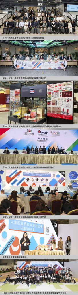 比赛期间进行了校企在线配对、创新•创意:粤港澳大湾区品牌设计论坛之广州站和澳门站、设计作品展览、入围作品评审暨颁奖典礼。特别鸣谢以下八位来自中国澳门、中国香港及中国内地的评审嘉宾:
