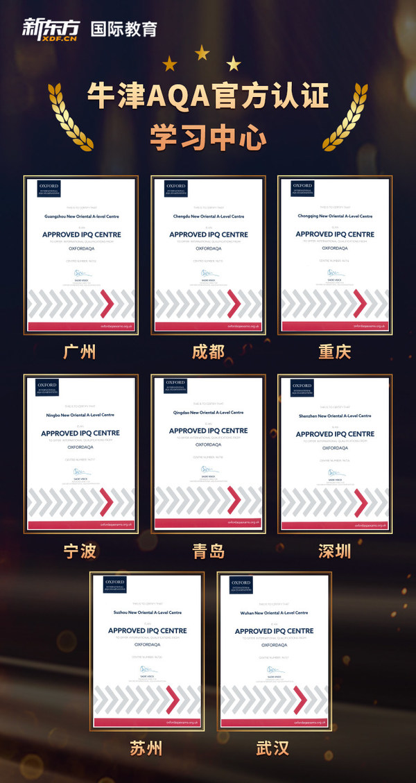 北京2022年1月20日 /新闻稿网 - Xinwengao.com/ — 经过多层的严格筛选及审核,牛津AQA国际考试局正式授权新东方国际教育在广州、重庆、青岛、苏州、成都、宁波、深圳、武汉8个城市成立官方合作学习中心。