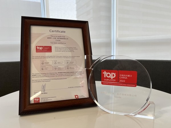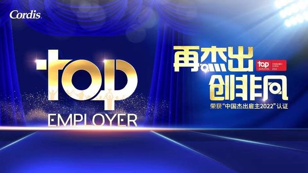 上海2022年1月20日 /新闻稿网 - Xinwengao.com/ — 2022年1月20日,Cordis中国继2021年首次参与该奖项评审并获殊荣后,荣耀蝉联“2022中国杰出雇主” 。