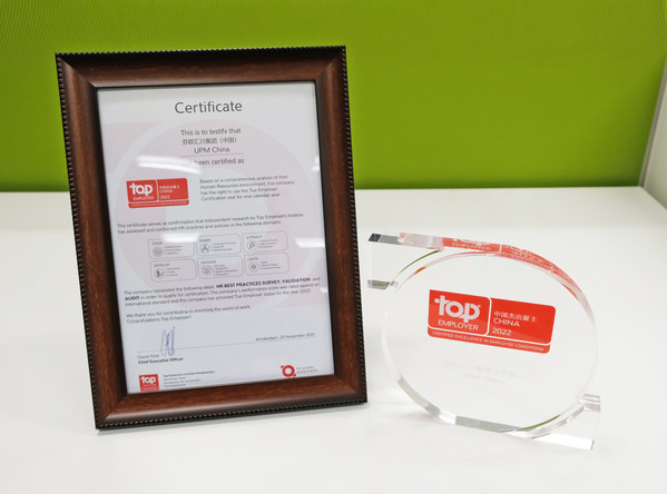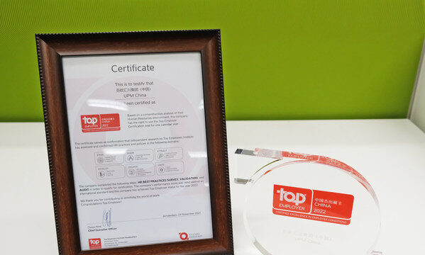 上海2022年1月20日 /新闻稿网 - Xinwengao.com/ — 近日,杰出雇主调研机构(Top Employers Institute)发布“中国杰出雇主2022”企业名单。作为世界领先的森林工业企业,芬欧汇川UPM集团(以下简称“UPM”)凭借其在人才发展、人才关爱和企业社会责任等领域的积极投入和不断创新,从众多参选企业中再度脱颖而出,成为第十次荣获该称号的企业。