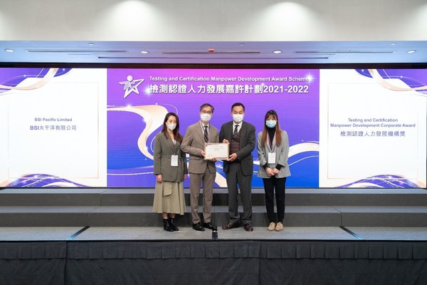 香港2022年1月21日 /新闻稿网 - Xinwengao.com/ — 2021-2022年检测认证人力发展机构奖嘉许计划于2021年12月22日在香港会议展览中心举办颁奖典礼。此次嘉奖计划包含两类奖项:检测认证人力发展机构奖,表彰测试和认证机构在人才和专业发展方面的显著成就,以及卓越检测认证专业人员奖,表彰通过学习或培训不断追求自我提升,或者在提升服务质量或生产力发展方面做出了卓越贡献的优秀检测认证从业人员。BSI香港公司荣获“检测认证人力发展机构奖”,在检测认证从业人员人力管理和专业发展方面取得了卓越的成就。