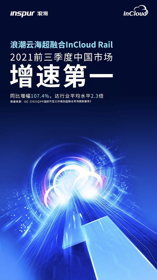 北京2022年1月21日 /新闻稿网 - Xinwengao.com/ — 近日,国际数据公司(IDC)正式发布《2021 Q3中国软件定义存储及超融合市场跟踪报告》。数据显示,2021年前三季度中国市场浪潮云海超融合增速第一。同比增幅107.4%,达业内平均水平2.3倍,持续领跑超融合中国市场。