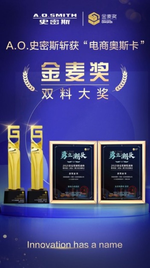南京2022年1月21日 /新闻稿网 - Xinwengao.com/ — 备受关注的电商领域年度庆典,2021“金麦奖”于日前隆重颁奖。家电巨头A.O.史密斯-佳尼特凭借百年品牌突围年轻市场荣膺年度“影响力品牌”,而A.O.史密斯家族“双十一营销方案”则荣获营销案例类铜奖,可谓一箭双雕、双喜临门。