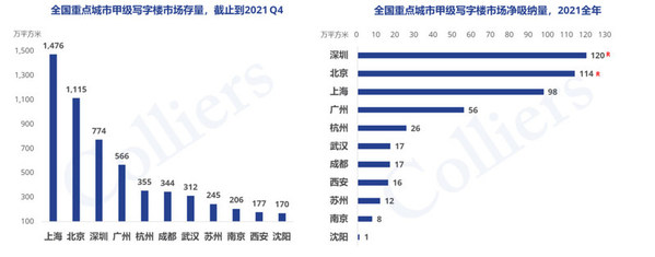 2022年的中国甲级写字楼市场将迎来供应大年,从目前预估的数据来看,除了北京的新增供应将有所减少外,其他10个市场的新增供应均有不同程度增加,年新增供应或将突破750万平方米。大批优质写字楼项目在短时间内的集中入市将使得各城市内的楼宇竞争愈加激烈,空置率将再度攀升,租金将继续承压。