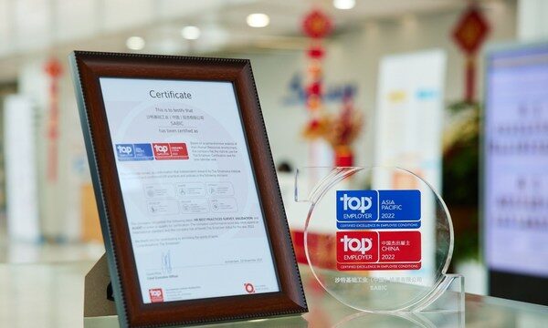 上海2022年1月24日 /新闻稿网 - Xinwengao.com/ — 近日,全球知名的多元化化工企业SABIC再获权威认证,连续第九年荣膺“亚太地区杰出雇主”。该奖项不仅高度认可了SABIC以员工为先的各项举措,也尤其彰显了其致力于通过创新型解决方案赋能公司全体人员应对未来挑战的长期承诺。在由国际权威认证团体 — 杰出雇主调研机构(Top Employers Institute)组织的本年度系列认证中,SABIC同时还在亚洲五大关键市场再次赢得殊荣,连续十二年荣膺“中国杰出雇主”以及连续九年在印度、日本、新加坡和韩国获得杰出雇主认证。