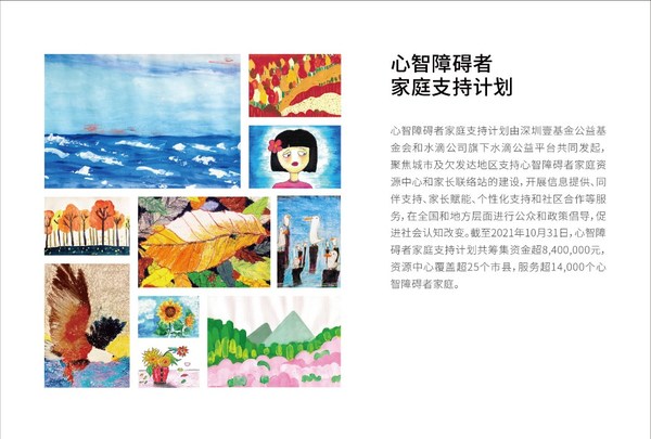 经过两年半的努力,“心智障碍者家庭支持计划”不仅直接帮助心智障碍家庭获得支持,也帮助家长有机会更深入、多角度地了解子女,并提升应对子女问题的能力。同时,项目也让更多的社区关注到心智障碍者及其家庭,让更多的法规、福利政策可以及时惠及心智障碍者及其家庭,并提供志愿支持,链接更多优质的社会资源,赋能家长及家长组织更有效地发挥自主倡导的价值。此外,水滴公益还携手壹基金在2021年以公益广告等形式呼吁社会公众关注心智障碍者家庭。