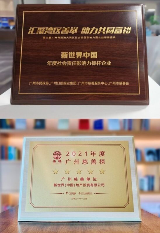 乡村振兴、疫情防控、防汛救灾……2021年社会各界合力汇聚爱心的善举,深入人心,更温暖人心。点点善意的星光,照亮了生活,为人们带来幸福感与安全感。而这一点点善意星光,凝聚了每一位社会公民的汗水与心意,也汇聚了每一个企业公民的善举与爱心,新世界中国便是其中之一。 广州2022年1月26日 /新闻稿网 - Xinwengao.com/ — 1月19日,由广州市民政局、广州日报报业集团、广州市慈善会联合主办的第三届粤港澳大湾区社会影响力暨公益慈善盛典隆重举行,广州市政府相关单位领导、企业代表、专家学者及慈善家出席并共同见证2021年度广州慈善榜的发布。新世界中国2021年向社会各界捐赠超过3600万元人民币,并凭借在脱贫攻坚、医疗健康、抗疫救灾、公共事业等领域的卓越公益慈善贡献,荣获“年度社会责任影响力标杆企业”,并荣登“2021年度五星慈善单位榜”前十名,成为助力共同富裕的港企先锋。 新世界中国荣获“2021年度广州五星慈善单位”及“年度社会责任影响力标杆企业” 本次盛典以“汇聚湾区善举,助力共同富裕”为主题。共同富裕既是一项需要长期坚持的基本国策, 也是一项全社会的行动。粤港澳大湾区正积极推进以慈善力量助力共同富裕,企业作为主要的生力军,更应积极履行社会责任,带动全社会参与其中。 一直以来,新世界中国响应国家号召,不遗余力为社会解后顾之忧,缓燃眉之急,以落到实处的行动,将企业的资源与力量与社会共享。2021年新世界中国通过多方面的创新,为社会各方创造共享价值,以商业向善的力量,为城市筑起一道美丽的风景线。 新世界的慈善公益涉及到国计民生的方方面面,涵盖脱贫攻坚、医疗健康、抗疫救灾、公共事业等多个领域。早在2019年,新世界中国就向中山大学附属第一医院捐赠2000万人民币,用以支持医护人员加强国际学术交流与培养。2020年疫情发生时,新世界集团创始人郑氏家族决定立即捐资捐款,成为首家捐款的港企,并火速宣布设立生产线生产口罩,与社会共渡难关,新世界集团与周大福集团对内地共捐献超过5000万人民币。2021年的河南水灾,新世界同样作为首批响应并捐款的港企支持救灾工作,与周大福珠宝共捐款2000万人民币。去年广州疫情出现反复,新世界中国第一时间向中山大学附属第一医院捐资100万人民币进行核酸方舱检验。近日,新世界在香港更成立了非营利房社企“新世界建好生活”,以成本价出售全新商品房,为缓解香港的住屋问题提出落地的领先方案。 新世界的慈善公益涉及到国计民生的方方面面 作为新世界中国行政总裁,黄少媚女士经常亲自参与到各种公益慈善活动中,在2021年11月广州伟博儿童福利基金会举办的“side by side 2021慈善晚会”上登台义演,为病童募集。新世界中国内部也形成了“人人慈善为人人”的企业氛围与价值观。如今,由员工组成的新世界义工队活跃于祖国各地,每年都会组织不同类型的义工活动,包括帮助村庄建设希望小学、建堤坝,帮助社区改善环境、做消防检测等。到2021年底,新世界中国已累计为社会提供超过34,000小时公益服务,以共享价值的理念与员工一起构建关爱共融的社会。 在慈善晚会上,黄少媚女士登台义演 与此同时,新世界中国也向外联动社会各界,与众多公益组织建立长期的协同合作,通过多姿多彩的活动,为社会传递温暖的正能量。这其中包括服务癌症患儿的广州金丝带特殊儿童家长互助中心、服务青少年儿童的伟博儿童福利基金会及广州青年志愿者协会,联合国儿童基金会及仁人家园等。2021年初,新世界中国携手广州少儿广播合唱团在星海音乐厅交响乐厅上演了一场别开生面的童声合唱音乐会,通过艺术关爱视障儿童,用音乐让他们感受世界的美好;年末,新世界中国携手伟博儿童基金会在广州岭南新世界举办“奇妙星空市集”,通过市民摆摊义卖为重病儿童筹集善款。 新世界中国认为,践行慈善公益,是每一个企业公民必须履行的使命与责任。新世界中国将秉持“创造共享价值”理念,携手企业内外、客户、股东、社区、城市,以实际行动兑现我们为人们构建美好生活的承诺。
