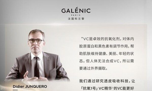 在专研VC精华和透皮吸收率的品牌中,就包括来自法国的高端科技护肤品牌Galenic法国科兰黎。法国科兰黎护肤实验室历经5年时间,潜心研究VC透皮吸收科技,对每一个复配成分严格筛选,添加比例严格控制,品牌在VC透皮吸收率的提高上取得了重大突破,并将成果应用于其拳头产品“抗氧1号”VC精华上。