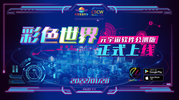 纽约2022年1月29日 /新闻稿网 - Xinwengao.com/ — 彩色星球科技(纳斯达克代码:cscw 以下简称:彩星科技)今日宣布,旗下娱乐元宇宙产品【彩色世界】今日正式上线,全球用户可以登陆苹果APP Store和谷歌Play进行下载。