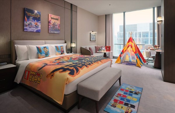 此次跨界合作选用的乐高®悟空小侠系列是以中国经典名著《西游记》为设计灵感,寓教于乐的同时还激起成年人的情感共鸣,是共享天伦之乐的理想选择。主题房内以床尾垫、靠枕、挂画打造沉浸式的英雄世界;印有银河探索号宇宙飞船的迷你帐篷和“玩转英雄路“游戏地垫将供孩子们进行玩乐和体验。除了房间的布置与设施外,皇冠假日酒店与乐高集团还为入住的家庭精心准备了主题欢迎礼,包含悟空小侠拼砌包、入住欢迎卡、两个悟空小侠角色头饰、第三季《乐高®悟空小侠》动画片故事书及涂色卡一份。孩子们将可化身成为英雄主角,与家人一起同乐,尽情享受宅酒店微度假的乐趣。