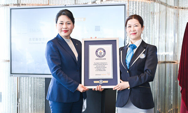 今天于餐厅举行的认证仪式中,在现场酒店宾客、工作人员和天之锦团队的见证下,吉尼斯认证官罗琼女士进行了认证宣读,宣布新纪录挑战成功,并为天之锦餐厅颁发认证证书。随着“建筑物中最高的餐厅”最新吉尼斯世界纪录™荣誉的诞生,活动现场气氛热烈非凡,大家共同庆祝这一荣耀时刻。