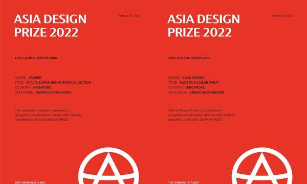 上海2022年2月24日 /新闻稿网 - Xinwengao.com/ — 近日,骊住集团旗下的百年卫浴品牌美标迎来喜报,凭借DuoSTiX Hygiene Spray多功能喷枪和新阿卡西亚舒薄丽台盆,分别将2022亚洲设计奖(ASIA DESIGN PRIZE 2022)的金奖 (Gold Winner)与优胜奖(Winner)收入囊中。作为极具含金量的国际性设计奖项,亚洲设计奖无疑是对美标创新设计力的充分肯定,也进一步诠释了美标人性化设计所赋予产品的实用性与美学的高度统一。