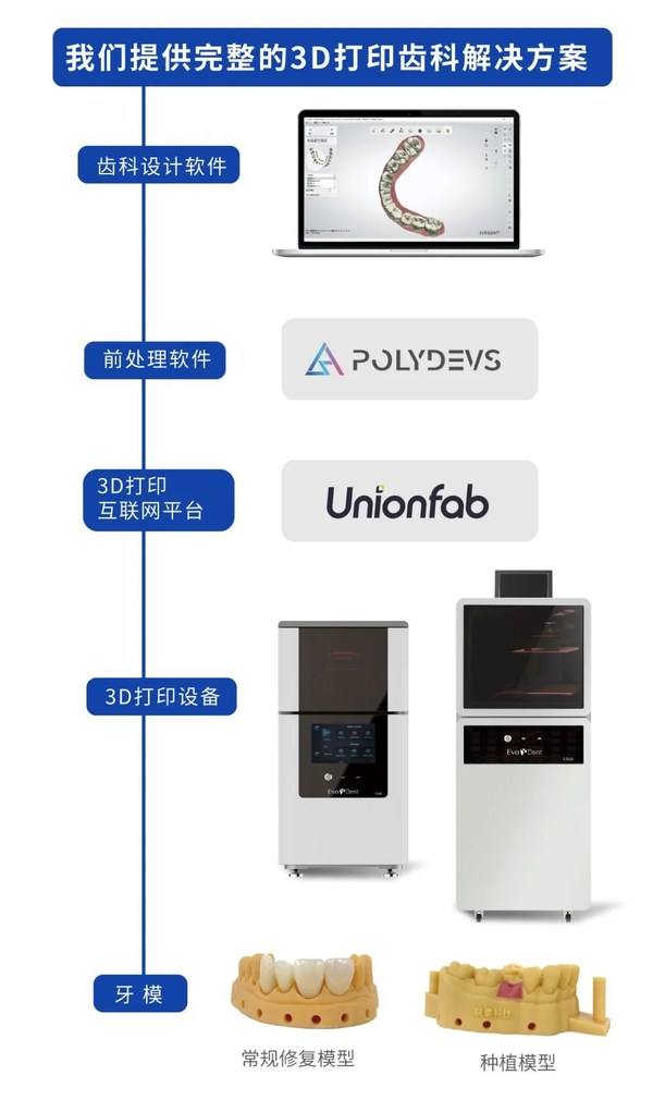 从CAD设计到3D打印成品,联泰科技EvoDent拥有全套3D打印解决方案,旨在以专业的3D打印技术,改变牙科加工方式、椅旁修复、正畸种植方式,定义数字化3D打印在牙科的应用标准。