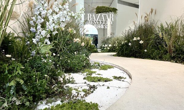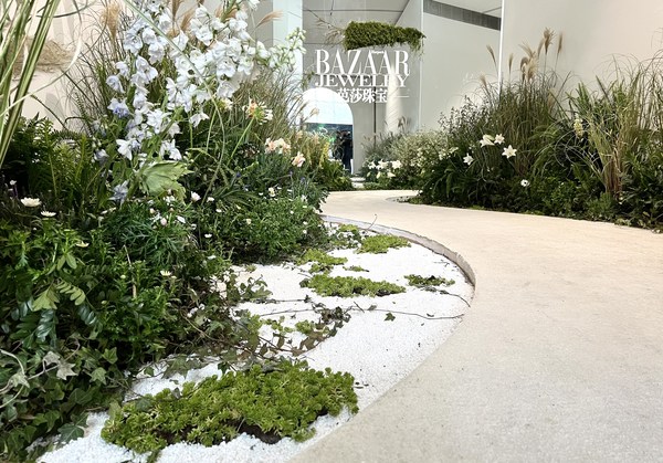 展区内被梦幻迷人的艺术氛围所笼罩,超过1000m²的展区空间、鲜花铺成的装置设计、以自然的绿色和纯白色为主基调,绿色植物点缀其间散发馥郁芳香,此时的美术馆变成了充满大自然气息的古典花园,璀璨的珠宝在其中肆意闪耀。
