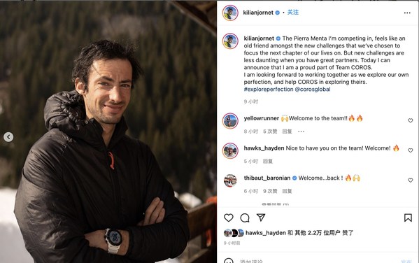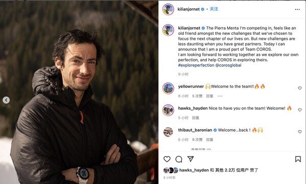 深圳2022年3月8日 /新闻稿网 - Xinwengao.com/ — 2022年3月08日,高端户外运动手表COROS高驰宣布传奇越野跑者、探险家Kilian Jornet,成为COROS高驰品牌全球代言人。