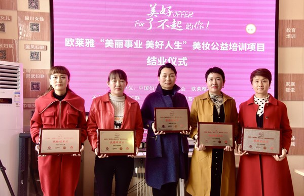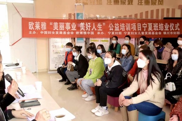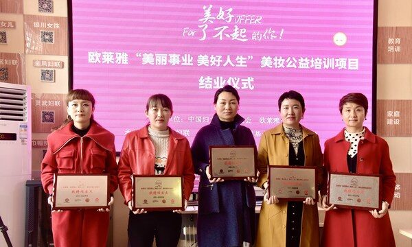 宁夏银川2022年3月11日 /新闻稿网 - Xinwengao.com/ — 在全新使命“创造美,让世界为之所动”的驱动下,欧莱雅集团在赋能女性之美的道路上不断探索和前行。去年9月,欧莱雅中国与中国妇女发展基金会签署了“美丽事业,美好人生”美妆公益培训项目的“新五年”战略合作,并积极探索升级支持女性就业、创业的新思路 — 首次深入乡村振兴的主阵地西北地区,在宁夏成立首个培训点;深耕关键技能培训领域,增加电商技能培训;启动“美业孵化计划”试点,实现就业、创业的精准对接和输出,以期通过“深耕+孵化”的“西北模式”,帮助乡村女性拓宽职业道路,进一步激发她们就业、创业的能力、活力和潜力,促进乡村振兴释放澎湃动能。今天,恰逢第112个“三八”国际妇女节,宁夏银川班的30位学员迎来了她们的毕业典礼,即将开启她们人生追梦之旅的全新篇章。