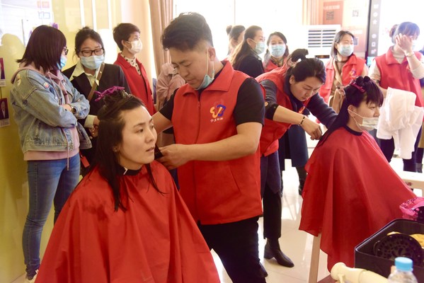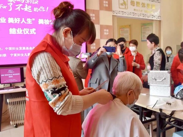 “美丽事业,美好人生”公益培训项目也始终秉持着“以爱心孵化爱心”的公益初心,在帮扶学员发展职业的同时,也积极地向她们传递公益精神。毕业典礼现场,学员们为银川市兴庆区20名“两癌”患者及特殊困难妇女提供了免费理发、化妆及美甲等公益服务。未来,她们还将通过“美业孵化计划”孵化的爱心便民美容美发店,为当地的相对弱势群体提供公益理发和其他爱心帮助,从受助者成为助人者,传承这份“美丽正能量”。