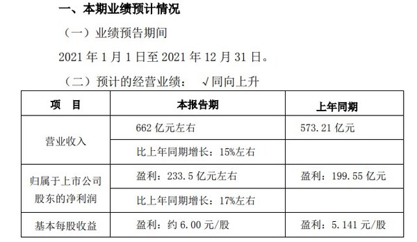 3月9日晚间,五粮液(SZ:000858)发布2021年度主要业绩数据公告。公告显示,2021年五粮液营业收入和净利润分别达到662亿元左右、234亿元左右,比上年同期增长分别达15%左右、17%左右,双双实现两位数增长,再次刷新历史新高。至此,五粮液已经成为连续24个季度营业收入实现两位数增长的A股酒类上市公司。