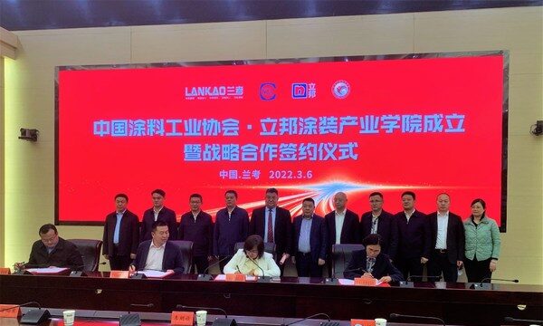 3月初,中国涂料工业协会·立邦涂装产业学院成立暨战略合作协议签约仪式于河南省开封市兰考县举行,开封市委常委、兰考县委书记李明俊,兰考县人民政府县长丁向东,中国涂料工业协会秘书长刘杰,兰考三农职业学院院长朱春燕,立邦投资有限公司副董事长、立邦中国供应链管理总部高级副总裁邢荣华,立邦中国产业人才发展中心负责人付俊英等领导出席签约活动。立邦中国与兰考三农职业学院,将共建“中国涂料工业协会·立邦涂装产业学院”,打造“河南省乡村振兴涂装行业技能人才培训基地”,实现产教融合。
