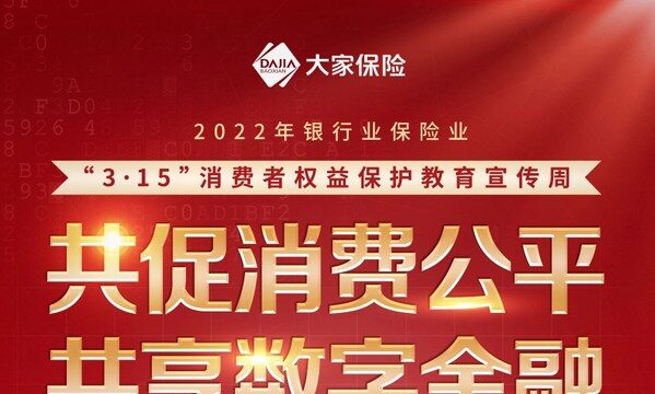 北京2022年3月15日 /新闻稿网 - Xinwengao.com/ — 2022年3月15日是第40个国际消费者权益日,为进一步做好保险业消费者权益保护和金融教育宣传工作,提升公众风险防范意识,维护消费者权益,大家保险集团联合旗下大家人寿、大家财险、大家养老等子公司,在全国范围内线上线下同步开展以"共促消费公平共享数字金融"为主题的"3·15"消费者权益保护教育宣传周活动。