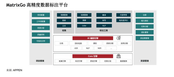 针对以上市场需求和痛点,MatrixGo高精度数据标注平台是澳鹏Appen在进入中国市场后结合海外实践经验,独立自主开发的适配中国市场特性的平台产品。平台集成了丰富高效的标注工具、具备强大的工作流调度能力、通过对自有团队、供应商团队及百万级众包资源进行资源整合,可支持丰富场景海量数据的各种类型标注项目。
