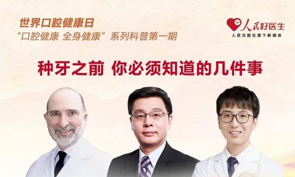 首期“口腔健康,全身健康”科普访谈节目以种植牙为主题,邀请到上海交通大学医学院附属第九人民医院口腔种植科主任、中华口腔医学会口腔种植专委会主任委员,赖红昌教授;上海交通大学医学院附属第九人民医院口腔种植研究中心主任、国家口腔临床研究中心主任委员 Maurizio Tonetti教授;上海交通大学医学院附属第九人民医院口腔种植科主治医师,闫恺潇医生,共同科普缺牙的危害、预防与治疗,打破关于“老了一定会掉牙”的错误认知,强调“预防大于治疗”的口腔护理观念,并生动讲解种植牙的基本原理与构造,带领大家由浅入深地了解种植牙。