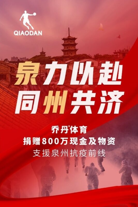 “泉”力以赴,同“州”共济。疫情当前,作为泉州本土成长起来的民族企业,乔丹体育以实际行动为家乡抗疫贡献力量,积极承担企业责任,体现社会担当。