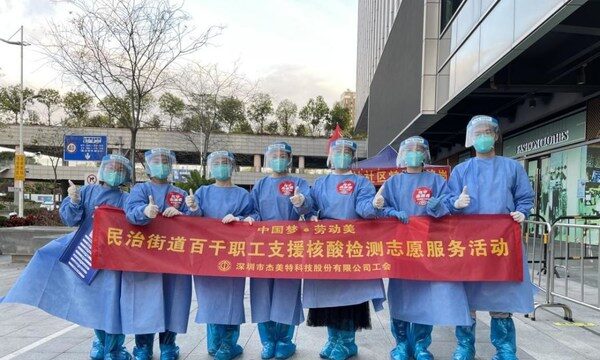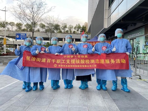 深圳2022年3月21日 /新闻稿网 - Xinwengao.com/ — 这几天,有一群奔走在深圳龙华各社区疫情防控第一线的特殊志愿者,他们有的把党员身份亮出来把模范带头作用发挥在一线,有的把工牌佩戴在防疫服下,在深圳龙华区的防控管控社区,为人民群众筑起了一条防控疫情的安全防线。他们就是来自深圳市杰美特科技股份有限公司的社区疫情防控志愿者们。