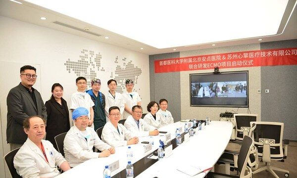 苏州2022年3月24日 /新闻稿网 - Xinwengao.com/ — 2022年3月22日,首都医科大学附属北京安贞医院(以下简称:安贞医院)与苏州心擎医疗技术有限公司(以下简称:心擎医疗)就膜式氧合器(ECMO)及其附件项目合作启动会(以下简称:启动会)在北京、苏州两地线上连线同步举行。安贞医院党委副书记、院长张宏家、合作项目负责人、副院长侯晓彤,及ECMO团队临床专家团队,与心擎医疗创始人徐博翎博士带领的研发与临床注册团队出席了本次合作启动会。该ECMO系统基于第三代全磁悬浮系统开发,目前合作成果在溶血性能、凝血性能、气体交换率、氧合器压降等主要技术指标中,均达到或优于市场现有的第二代ECMO领先产品。