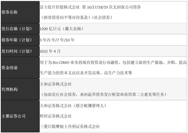 通过解决未被满足的医疗需求,改善医疗资源可及性,为可持续社会的发展做贡献 上海2022年3月28日 /新闻稿网 - Xinwengao.com/ — 2022年3月23日,富士胶片控股株式会社宣布,公司计划于2022年4月发行1200亿日元(约合10亿美元)的社会债券,这将是日本企业债券市场有史以来规模最大的社会债券发行(*1)。此次社会债券的发行,将为公司生物制药的合同开发和制造业务(Bio CDMO)提供资金支持,公司的这项业务将有助于解决未被满足的医疗需求,并改善全球范围内药品的可及性。债券收益将主要用于以下几个方面:为现有相关资本投资进行再融资;兴建生产基地、提升产能;促进Bio CDMO业务高效率、高生产力技术的研发,以及相关的并购。 在富士胶片以2030财年为目标的CSR计划“Sustainable Value Plan 2030”(*2)中将“健康”列为了重点领域之一。作为公司健康目标的一部分,富士胶片将通过其涵盖预防、诊断和治疗的尖端产品和服务,帮助改善世界各地医疗服务及医药品的可及性。在过去10年间,为了满足日益增长的生物制药工艺研发和生产需求,富士胶片已向Bio CDMO业务投资了6000亿日元(约合55亿美元)。这些投资主要用于为资本支出扩张项目提供资金以及提升内部新技术的研发,从而提高富士胶片生物制品、疫苗和先进疗法的生产能力。公司还为新冠病毒候选疫苗的生产提供支持。 随着癌症、心脏病、神经系统疾病和新型传染病(包括COVID-19)患者数量的增加,生物制药市场预计将继续加速增长。富士胶片凭借其在抗体、重组蛋白、基因疗法和疫苗等多种生物制药工艺研发和制造方面的技术专长,建立了世界一流设施,为生物制药客户提供包括从小规模到大规模原料药生产、灌装到成品和最终包装在内的端到端全流程服务。富士胶片将继续投资并扩大其Bio CDMO业务,通过稳定且高质量的产品供应为客户提供支持,助力改善全球患者的健康。 *1 据富士胶片调研,截至2022年3月23日,在日本以社会债券发行的公司债券。 *2 富士胶片在“Sustainable Value Plan 2030”中确定了“环境”、“健康”、“生活”和“工作方式”四个重点领域,以及“供应链”和“公司治理”两个业务活动的基础,旨在通过开发产品、服务和技术创造新的价值,努力为建设可持续社会做出贡献。详见以下URL:https://www.fujifilm.com.cn/cn/zh-hans/about/hq/sustainability 1. 债券概述 富士胶片将于2022年4月在日本发行1200亿日元社会债券 2.社会债券框架和第二方意见 富士胶片制定的社会债券框架涉及四个核心部分:(1)收益的使用、(2)项目评估和选择过程、(3)收益的管理、(4)报告。本框架已获DNV Business Japan k. k.的第二方意见,DNV Business Japan k. k.作为独立外部审查者,确认社会债券框架符合国际资本市场协会(ICMA)的“社会债券原则(SBP)2021”和日本金融厅的“社会债券指南(SBG)2021版”。 关于富士胶片的Bio CDMO业务 富士胶片主要通过其子公司FUJIFILM Diosynth Biotechnologies经营Bio CDMO业务,该公司是业界领先的生物制品合同开发和生产公司(CDMO),在英国、美国和丹麦都设有工厂。FUJIFILM Diosynth Biotechnologies公司在合同开发制造包括抗体药物、蛋白质、基因治疗药物和疫苗等在内的各类生物制药方面拥有超过30年的经验,凭借其行业领先的专有高生产率技术pAVEway™和Apollo™X,提供从细胞系开发到工艺研发、研究用药物生产和商业生产的全面合同服务。