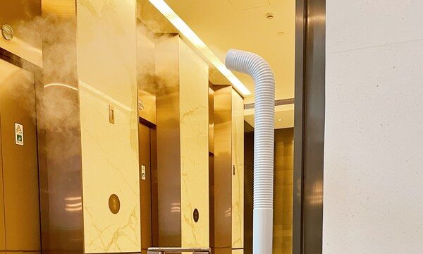 各楼层摆放装有低浓度次氯酸水的加湿机,每日对各楼层的重点区域进行全天消杀。